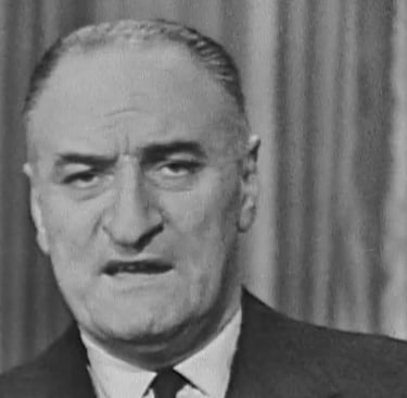 Jean-Louis TIXIER-VIGNANCOUR (1907–1989) était un avocat et homme politique français, marqué par un parcours complexe : député de droite dans les années 1930, rallié un temps au régime de Vichy, défenseur d’écrivains et de militants d’extrême droite (comme Louis-Ferdinand Céline ou des membres de l’OAS). En 1965, il se lance dans la première élection présidentielle française au suffrage universel direct, épaulé par les Comités Tixier-Vignancour fondés l'année précédente. Son directeur de campagne est Jean-Marie Le Pen, qui fut député poujadiste entre 1956 et 1962.Son mouvement rassemble diverses tendances de l’extrême droite : anciens de Vichy, partisans de « l’Algérie française », poujadistes, anti-gaullistes, etc.