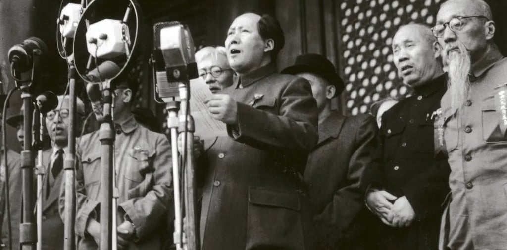 Nous sommes le samedi 1er octobre 1949 à Pékin. Mao Zedong, 55 ans proclame l’avènement de la République populaire de Chine depuis le balcon de la Porte de la Paix céleste celle qui donne sur la grande place Tien An Men, à proximité de la Cité interdite des anciens empereurs. L’anniversaire de ce jour est depuis devenu fête nationale dans le pays et consacre donc la victoire du Parti communiste chinois sur les nationalistes de Tchang Kai-chek qui vont se réfugier sur l’ile de Taiwan.